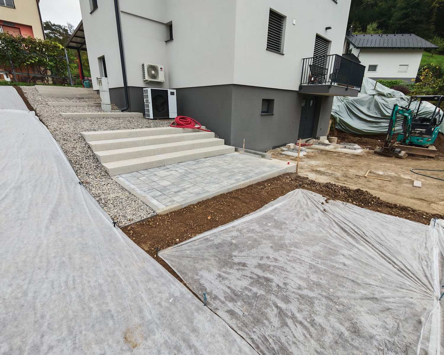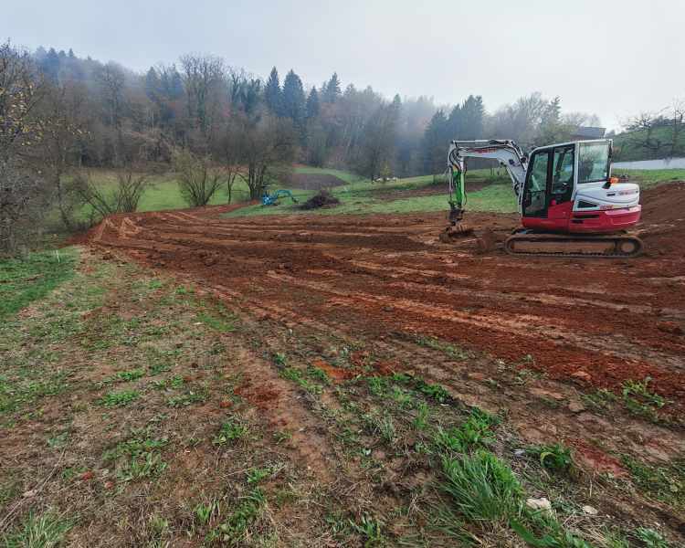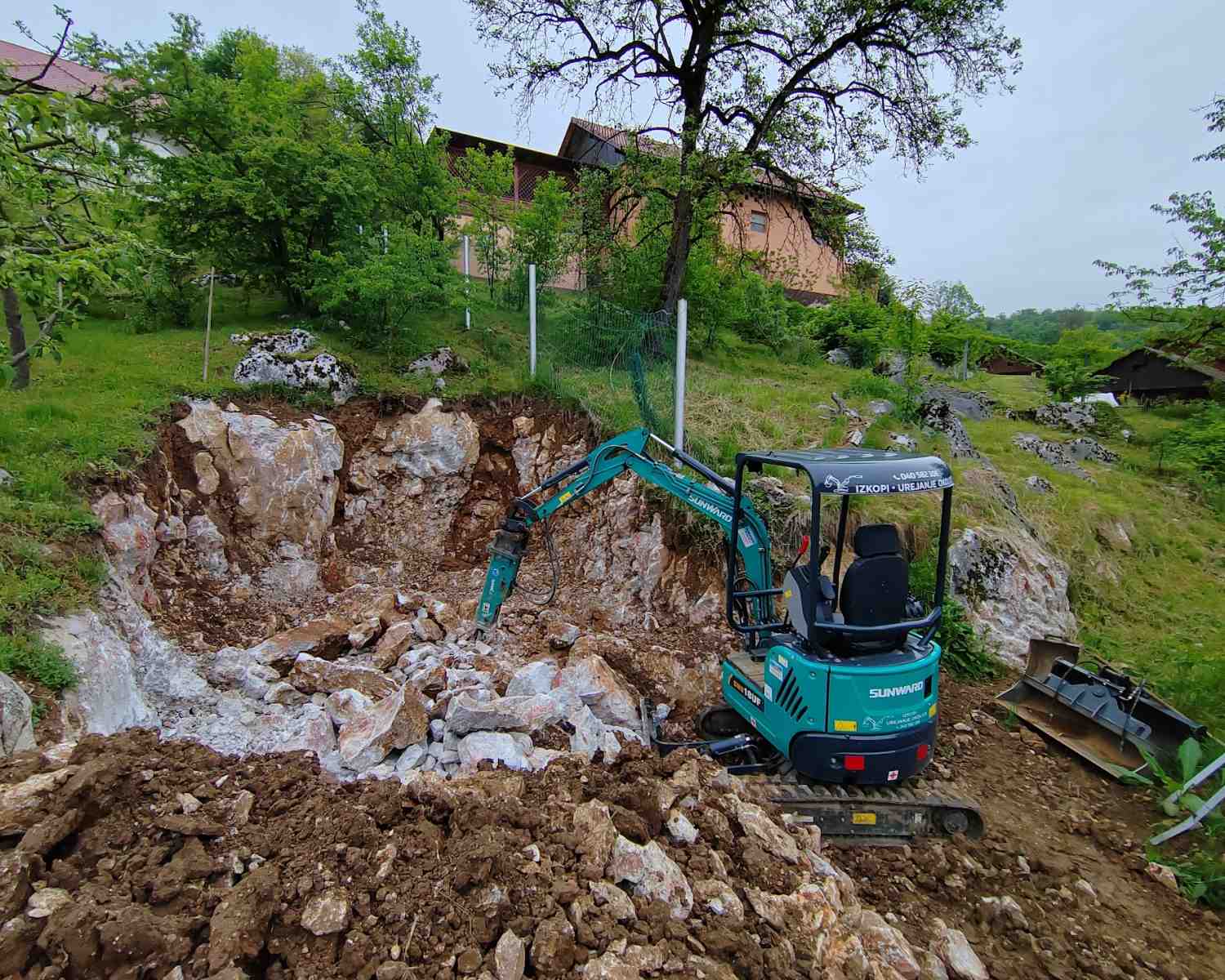 Izdelava pasovnega temelja za ograjo in groba ureditev okolice
