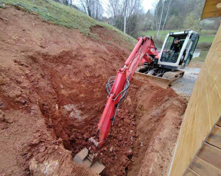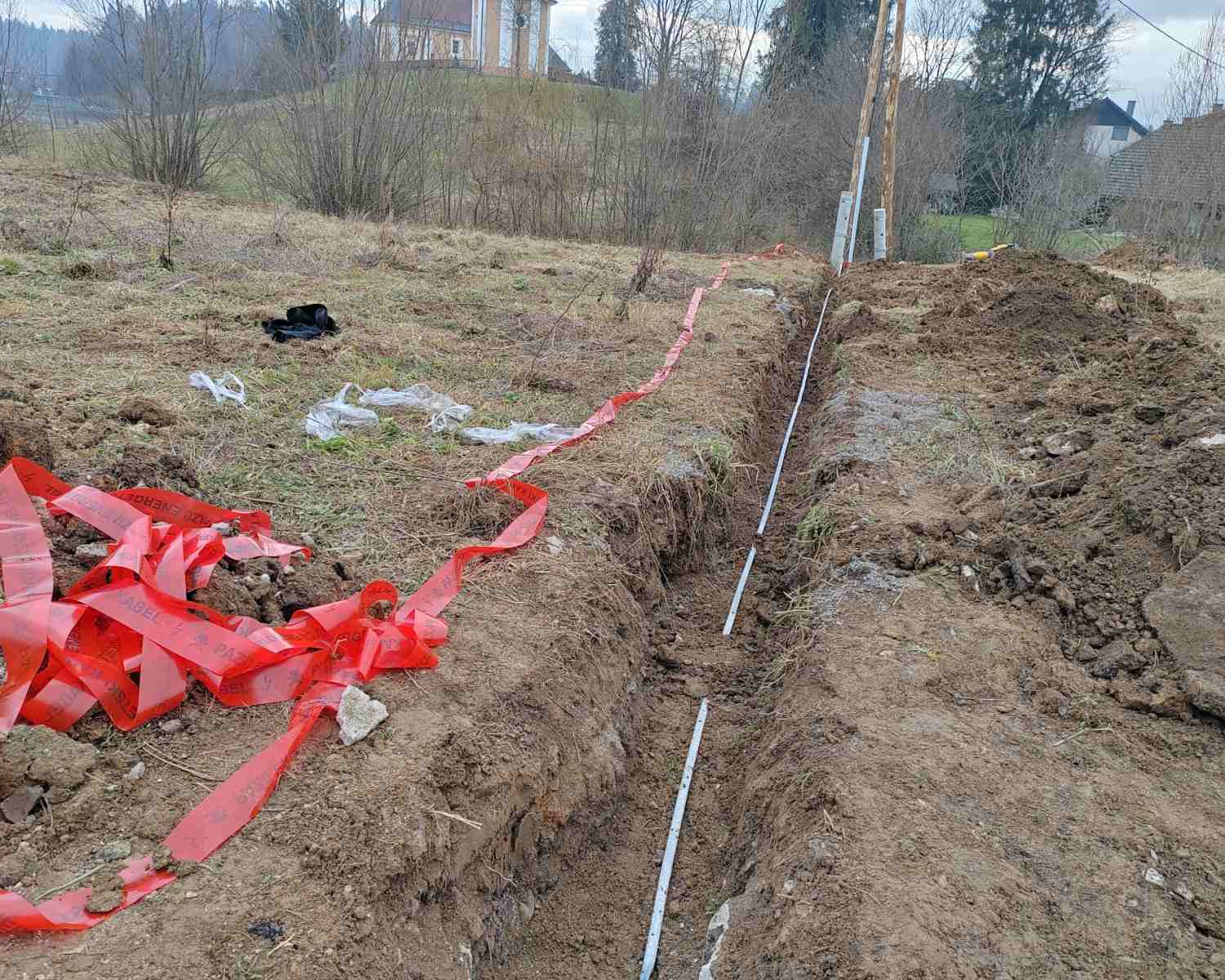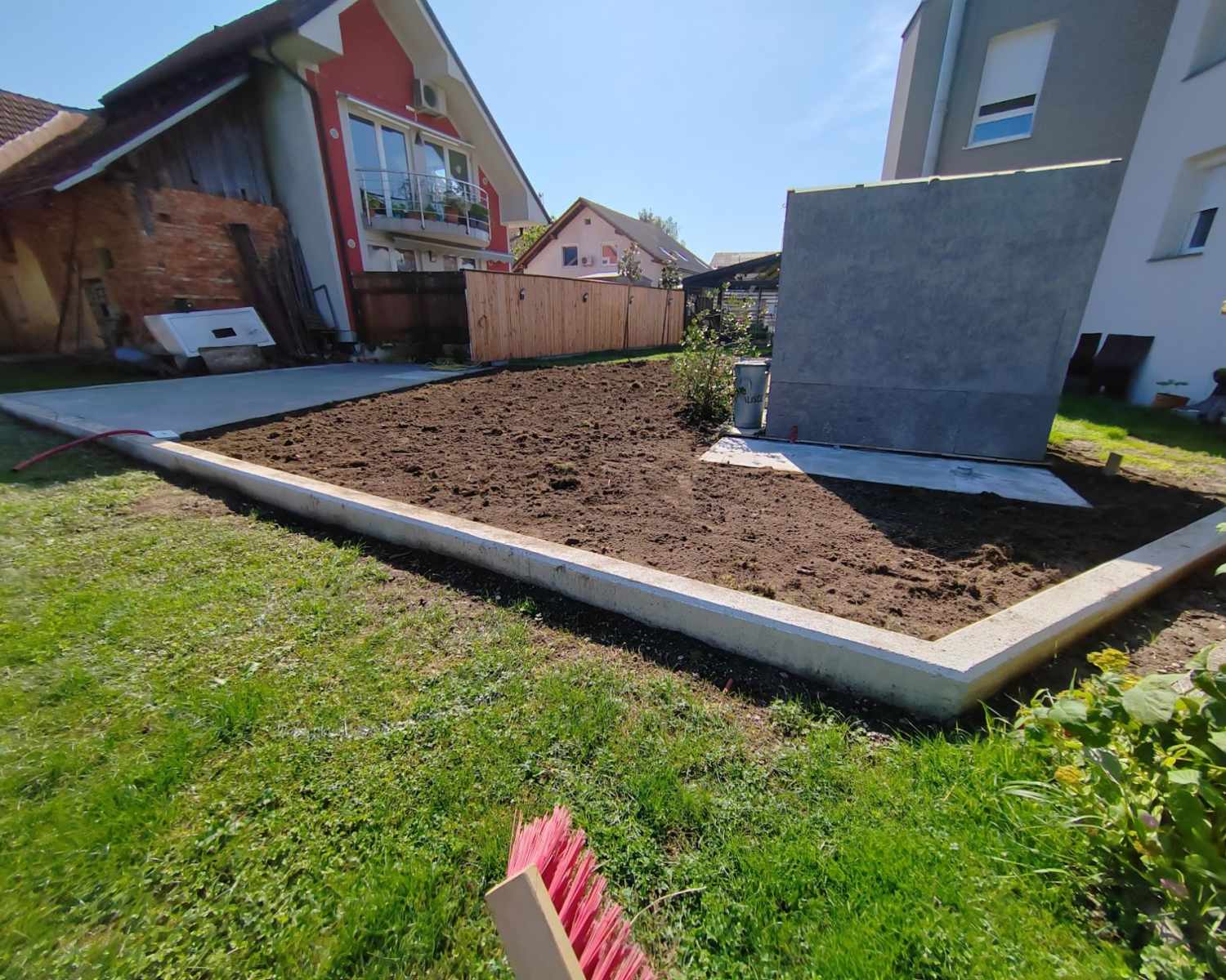 Izdelava pasovnega temelja za ograjo in groba ureditev okolice